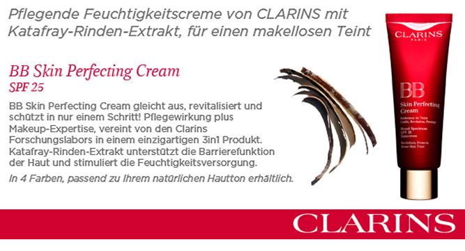 Clarins BB Creme – Beauty-Wochen Clarins BB Skin Perfecting Cream [...] (Admin)2015-06-03T10:24:49+02:00 Weiterlesen
